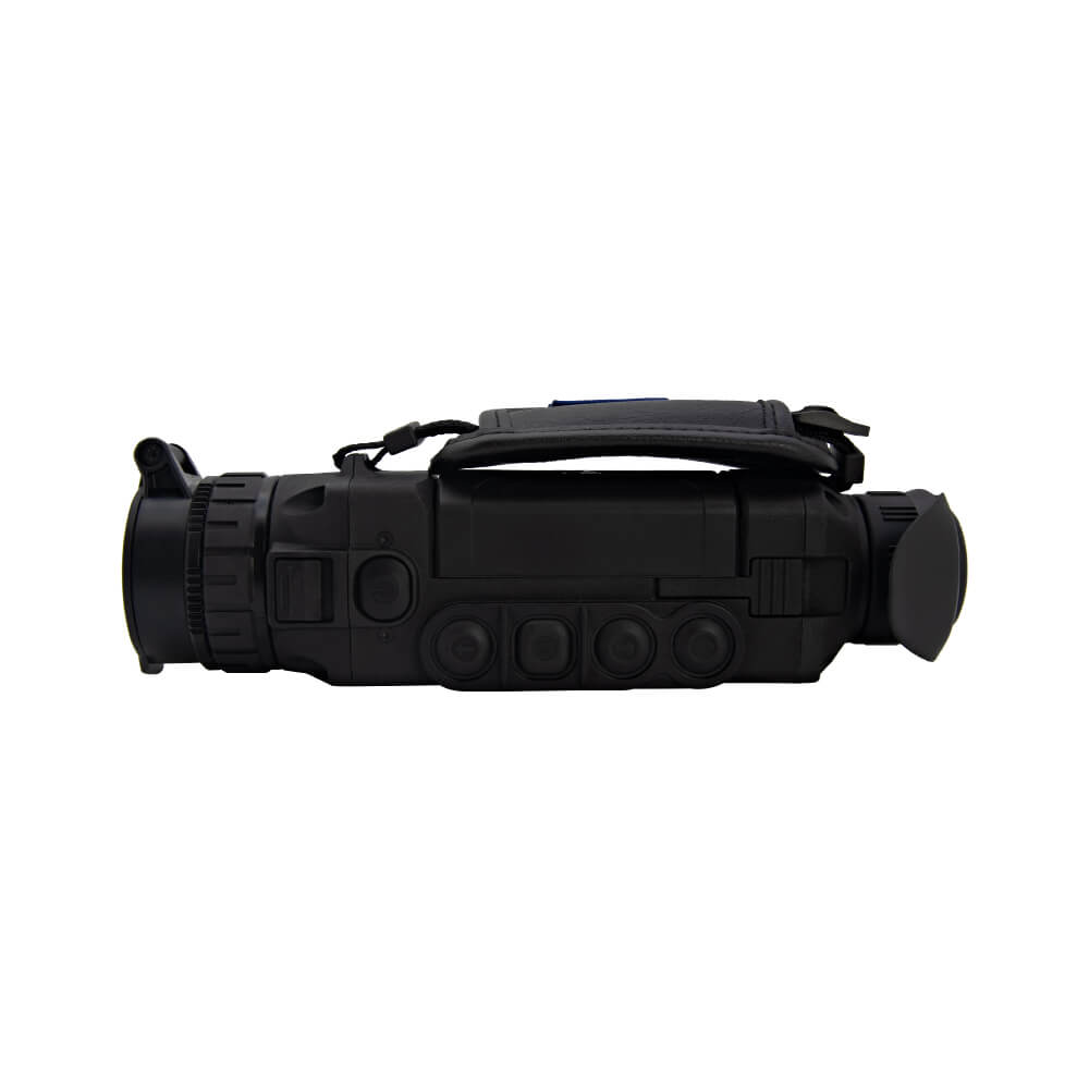 Легкий и удобный тепловизор-монокуляр в черном анодированном корпусе из алюминиевых сплавов. Корпус прибора полностью герметичен и выдерживает погружение в воду на глубину до 1 метра. Входная линза объектива диаметром 38 мм изготовлена из германия Разрешение неохлаждаемого теплового сенсора составляет 640х480 точек с частотой обновления кадров 50 Гц. Тепловизор обеспечивает обнаружение ростовой фигуры на расстоянии 1350 метров. двухкратное цифровое увеличение прибора позволяет передавать детали на больших дистанциях наблюдения. Прибор оснащен модулем Wi-Fi для передачи изображения на мобильное устройство. Встроенные литиевые аккумуляторы обеспечивают работу прибора не менее 8 часов.