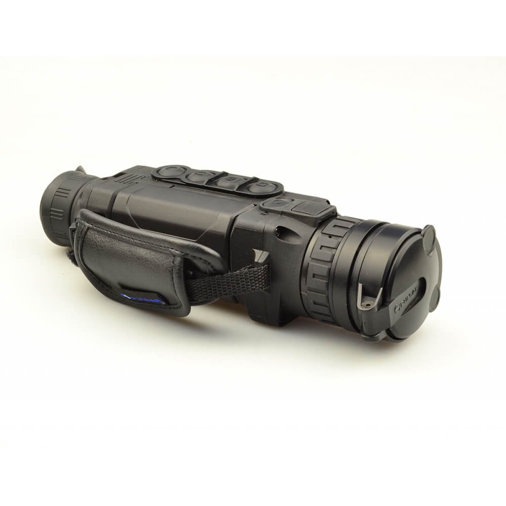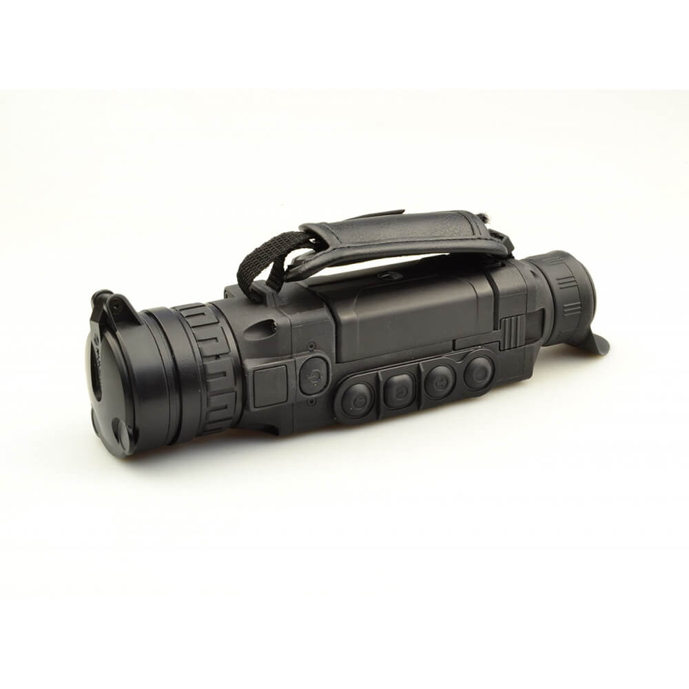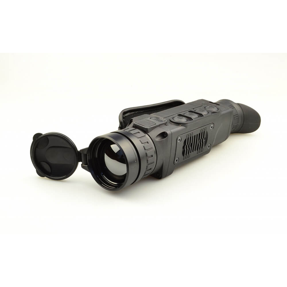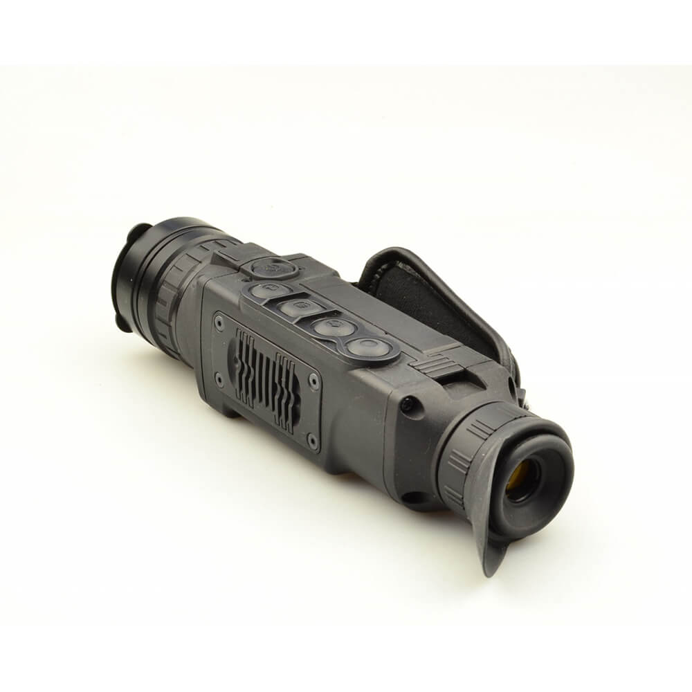 Легкий и удобный тепловизор-монокуляр в черном анодированном корпусе из алюминиевых сплавов. Корпус прибора полностью герметичен и выдерживает погружение в воду на глубину до 1 метра. Входная линза объектива диаметром 50 мм изготовлена из германия Разрешение неохлаждаемого теплового сенсора составляет 384×288 точек с частотой обновления кадров 50 Гц. Тепловизор обеспечивает обнаружение ростовой фигуры на расстоянии 1800 метров. Трехкратное цифровое увеличение прибора позволяет передавать детали на больших дистанциях наблюдения. Прибор оснащен модулем Wi-Fi для передачи изображения на мобильное устройство. Встроенные литиевые аккумуляторы обеспечивают работу прибора не менее 8 часов.